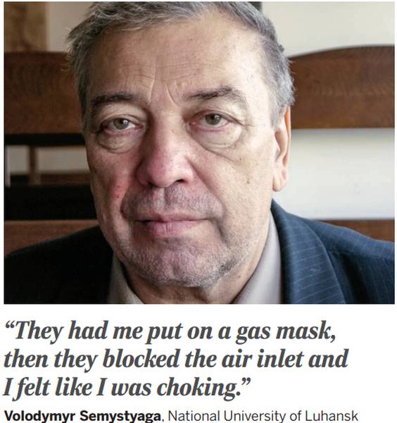 Около 11 утра 23 июня Владимир Семистяга, работая в Государственном архиве Луганска, в погруженной в конфликт восточной Украине, услышал звонок мобильного. Звонивший попросил выйти на улицу, чтобы о чем-то спросить. Там к ученому приблизились двое. «Один направил мне автомат в живот», — рассказывает 65-летний Семистяга, профессор истории из Луганского национального университета. «Никто на улице не обратил внимания на то, что происходит». Они затолкали его в такси и уехали.