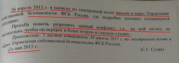 В ходе обмена сообщениями «Сергей» сообщает новоявленному агенту условия секретного сотрудничества, его положительные и отрицательные стороны, и между прочим намекает Суляку о необходимости прохождения тестов на «полиграфе» в Москве. Переписка осуществлялась посредством почтовой службы Яндекс.ру.