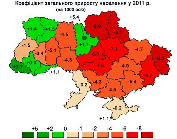 Как вымирает Украина: динамика населения регионов страны в 2011 году