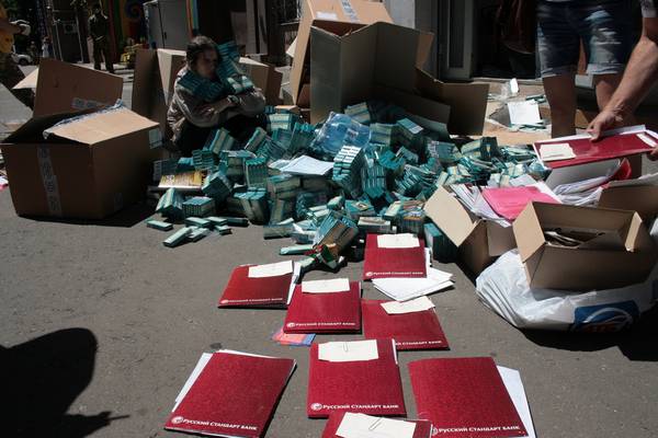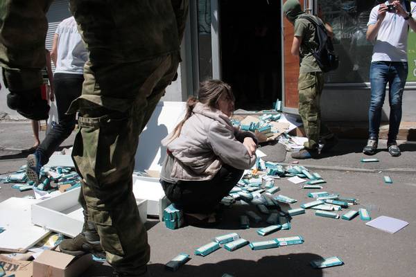 4 июля в аптеке происходило что-то невероятное. Парни в балаклавах сновали туда-сюда, вынося из аптеки ящики с лекарствами, рассыпая упаковки таблеток и топча их. Частная предпринимательница Татьяна Кропивкина, работавшая за прилавком, поначалу заголосила — мол, грабят. Но вскоре притихла и сидела на дороге, наблюдая, как уничтожают ее товар.