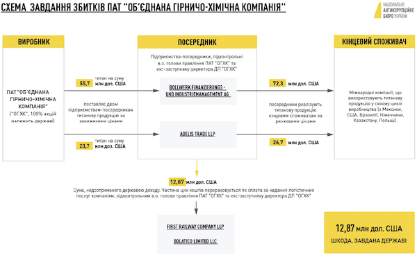 Насамперед, саме вона була серед фігурантів розслідування НАБУ, яке виявило злочинні схеми із продажу продукції ОГХК її колишніми менеджерами Р.Журило та Ю.Перцевим, які спричинили державі фінансові збитки на суму 300 млн. грн.