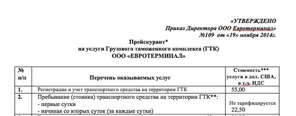 Расценки с сайта этой фирмы, лихо поднимающей шлагбаум Одесского порта: