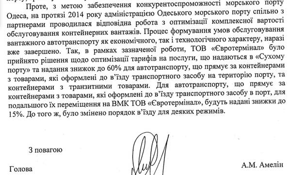 А известно ли Министру, что частная компания, контролирующая эту систему в портах, уже известила в одностороннем порядке клиентов портов, что с июля повышает цены на свой «навязанный сервис» в 2,5 раза? Без объяснения причин. А когда клиенты портов обратились по этому поводу в АМПУ, им, естественно, ответили: «Это — их собственный коммерческий проект в наших портах, а наше дело — «левая сторона».