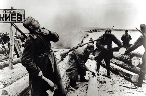 Вот так, в крови и костях украинцев, бездумно и преступно загнанных на немецкие пулеметы, получали Киев. Освобождая Украину от нацистской оккупации с ее экономической эксплуатацией, массовыми уничтожениями гражданских и геноцидом, советское командование своими поголовными мобилизациями и отправкой неподготовленных людей на фронт совершило новое преступление против человечества. Украинские мужчины, пережившие оккупацию, должны были искупить свою «вину» кровью, украинские женщины и дети - каторжным трудом и голодной смертью в послевоенные годы.