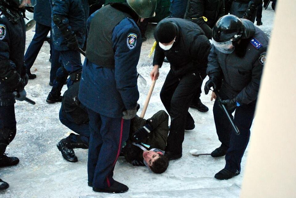Милиция совместно с «титушками» избивает протестующего в Днепропетровске