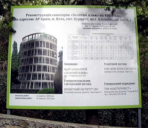Ситуация один к одному напоминает алупкинскую историю с бывшим пансионатом «Златоуст»: самой здравницы как учреждения и даже зданий уже нет, новые корпуса еще не построены, но семь карт пляжа почему-то имеют оздоровительное назначение. Это обстоятельство позволяет арендатору прибрежной зоны — компании «Интерстар-Ресурс-Сервис», которая опосредовано принадлежит олигарху Василию Хмельницкому — огородить пляжи забором.