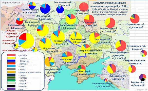 Публикуемые ниже статистические данные, наложенные на «картинку», объясняют объективность появления на карте мира Украины как нового независимого государства. А также почему в нашей стране будет тесно «русскому миру», навязываемого Украине Москвой.