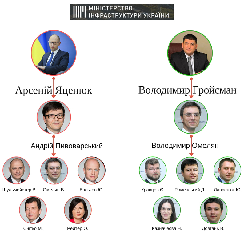 После парламентских выборов 2014 министроминфраструктуры стал генеральный директор энергетического холдинга «Континиум» Андрей Пивоварский . Он назначил себе заместителей, среди которых был и следующий министр инфраструктуры - Владимир Емельян. Согласно исследованию эффективности работы 18 министерств за 2015 год, ведомство заняло 11-ю строчку рейтинга.