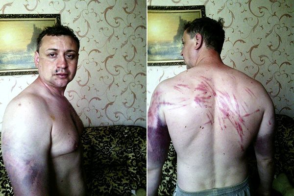 Повязали мне на шею плотную желто-блакитную стричку, подтянули меня на ней за шею. На запястья тоже две жовто-блакытни стричкы, которые нашли у меня в кармане. Там было написано «Молюсь за Украину». По милости божией я целый день я там пробыл и все это время это было избиение. Били все. Пять-шесть человек, даже девчонки приходили и били просто для развлечения. Меня бы живым оттуда не выпустили — это однозначно. Когда меня били, я громко молился.