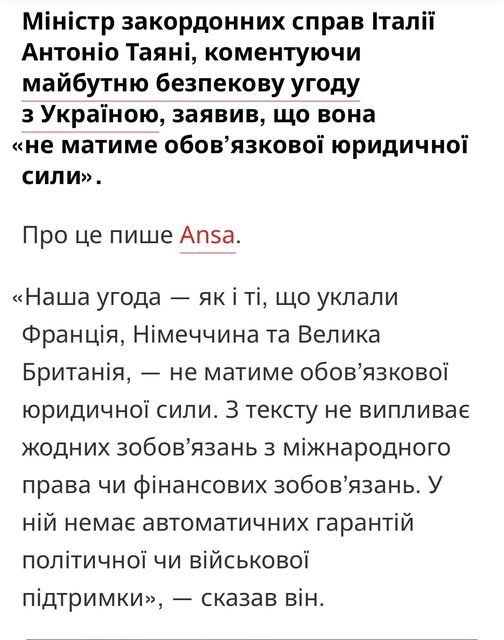 Окремі угоди з різними країнами про так звані гарантії безпеки схожі на гарантії небезпеки