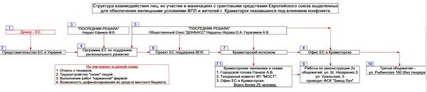 Вот как выглядит схема махинаций с грантовыми средствами на примере Краматорска (см. фото — увеличивается):