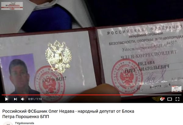 На фото: Нардеп Сергей Мельничук назвал Недаву агентом ФСБ, показав эту корочку уже несуществующей общественной организации. Однако, есть информация о том, что Недава все-таки проходил определенный курс подготовки в РФ