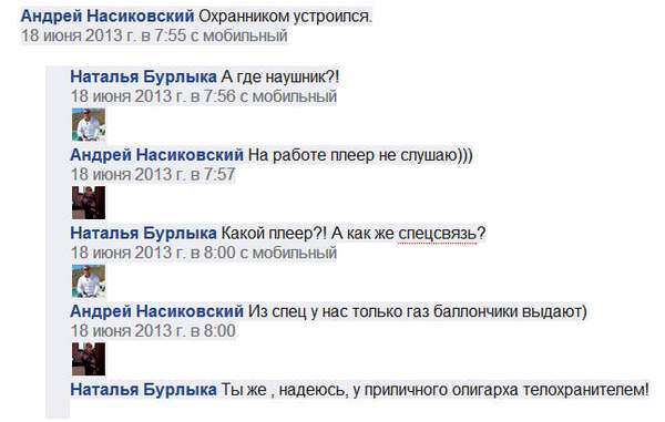 Алла Кондрашкина). Дама пребывает в декретном отпуске, о себе распространяться не пожелала. Защитница Насиковского оказалась (Гугл знает почти все) супругой Эдуарда Паленого, пожилого киевского бизнесмена, предпочитающего о своем бизнесе не распространяться. Э. Паленый тоже уважает культуризм, занимается на тренажерах и не чужд новым тенденциям — в частности, словоблудию в ВКонтакте. Интересна, например, реакция гражданина Э. Паленого на избиение Т. Чорновол: «Мало, мало дали!» — это его непосредственная реакция на приведенную тут же, в посте, (Журналистку и кандидата в депутаты Татьяну Чорновил избили на округе: «Я стою вся в крови»..)