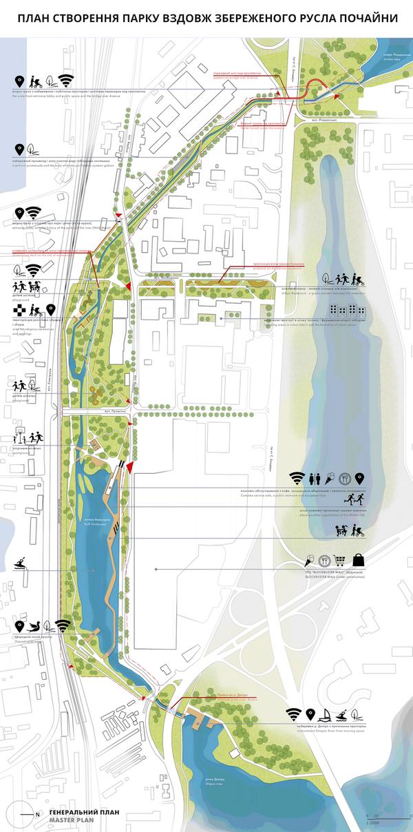 План создания парка вдоль сохраненного русла Почайны. Кликните на изображение, чтобы просмотреть в полном размере