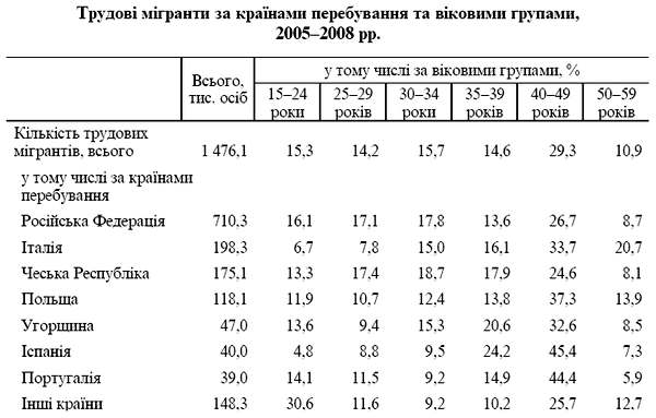Если отношения между городским и сельским населением в Украине составляет 68 на 32, то среди трудовых мигрантов — 54 на 46. Наиболее «городской» является миграция в «другие» страны, наиболее «сельской» — в Чехию.