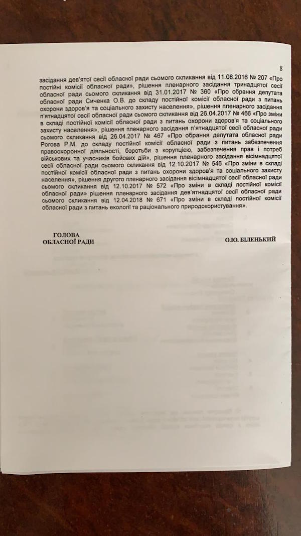 Глава облсовета А. Биленький выступил с заявлением, что действия депутатов бюджетной Комиссии незаконны (что является циничной ложью). А также запретил сотрудникам аппарата облсовета публиковать официальные решения и документы Комиссии на официальном сайте облсовета (что является уголовным преступлением). Пребывая под угрозой увольнения со стороны А. Биленького и под угрозой уголовного преследования (ст 351 УК “Препятствование деятельности народного депутата Украины и депутата местного совета” и ст. 364 УК “Злоупотребление властью или служебным положением”), клерки аппарата регистрируют решения бюджетной Комиссии, но … их не публикуют.