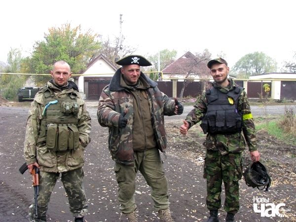 Надо сказать, к «Правому сектору» я попал случайно. Вечером заметил в ленте Фейсбука запись своего знакомого волонтера, что кто-то собирается ехать из Кривого Роге в Пески и аэропорт, попросил их контакты, перебросился словечком, а в пять часов утра уже сидел в машине с тремя криворожцами, одной женщиной и двумя мужчинами. Женщина - католичка с польскими корнями. Один из мужчин - с еврейскими корнями и многочисленными друзьями среди сванов, так как сванкой была его первая жена. Второй - с загоревшим, но веселым лицом пролетария, у которого, по Марксу, нет отечества. Мы выехали под католическую молитву, ехали под грузинские и еврейские песни, а также под короткие и веские замечания человека, который двумя ногами стоит на земле. Все трое говорили на русском языке.
