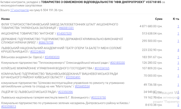 НВФ “ДНІПРОПРОЕКТ - компанія, яка займається постачанням будівельної арматури, зокрема є учасником торгів на Прозорро. Отримує мільйонні контракти на конкурентній основі, останні з яких пов’язани з відбудовою та військовими организаціями.