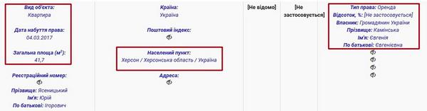 Працюючи в Херсоні, Юрій Ясеницький орендує квартиру площею 41 кв. м. Користується цим житлом Юрій Ігорович, схоже, безоплатно, адже жодних витрат на оренду квартири він не зазначив.