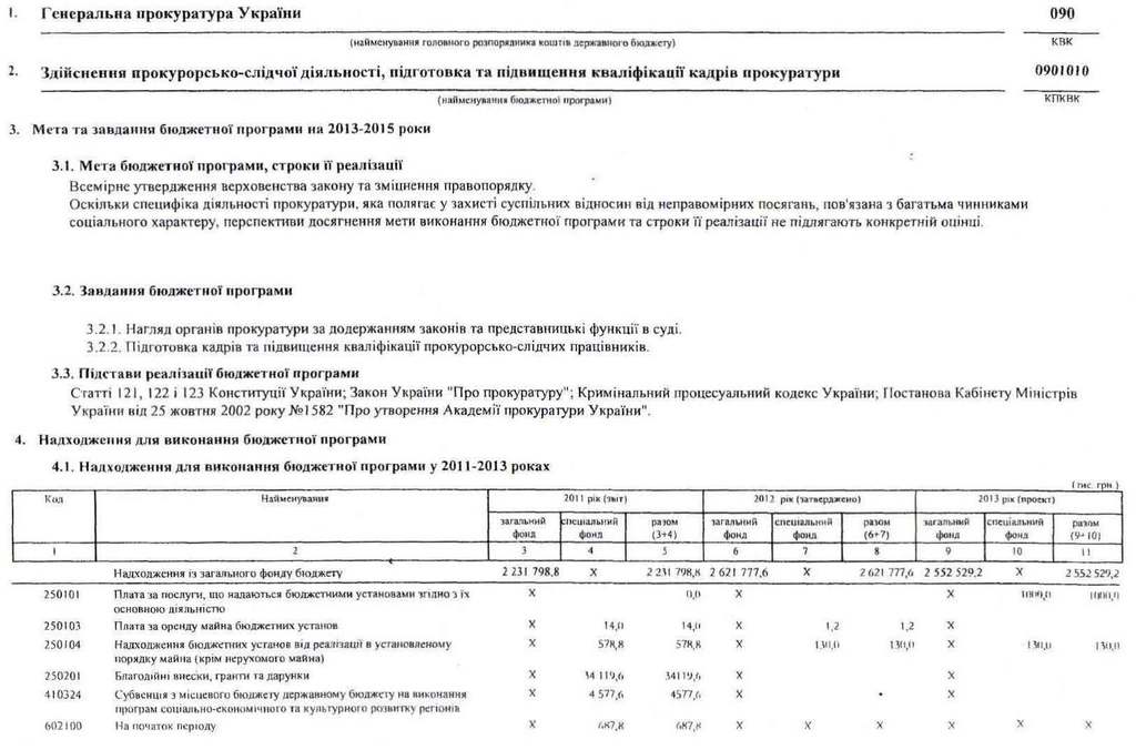 Автору статьи удалось получить копию выписки паспорта программы ГПУ «Осуществление прокурорско-следственной деятельности, подготовка и повышение квалификации кадров прокуратуры» на