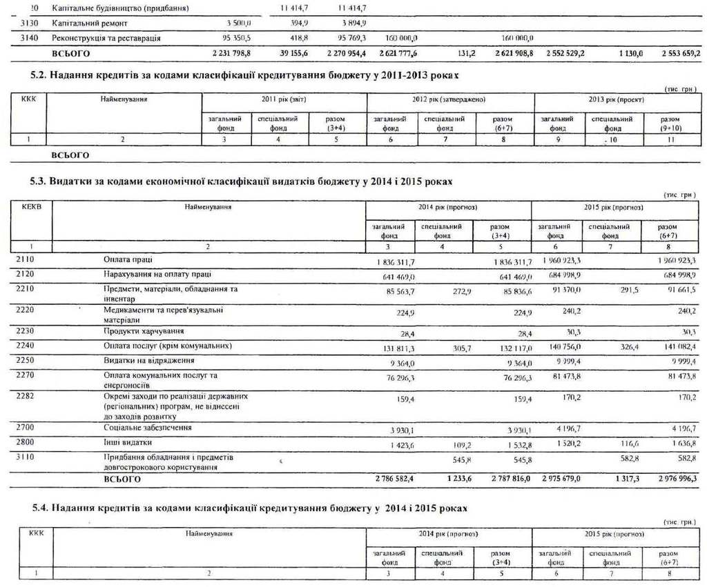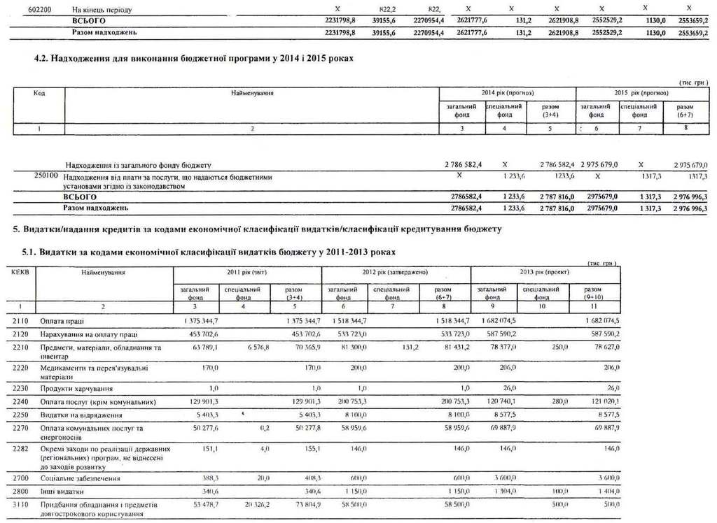 К сожалению, расчеты несколько занижены. Например, в паспорте программы разработчики на 2013 год для функционирования органов заложили 2 миллиарда 555 миллионов 659,2 тысячи гривен, тогда как реально в бюджете заложено 3 миллиарда 201 миллион 659 тысяч гривен.