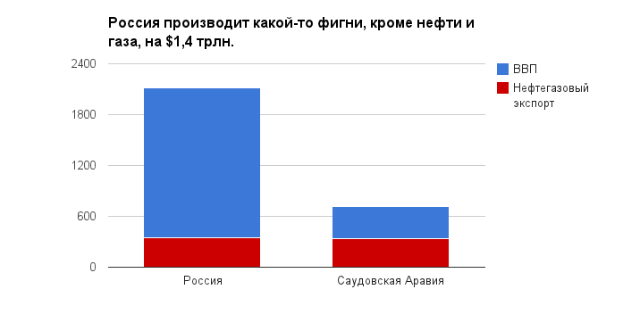 Получается, что Саудовская Аравия всего на $5,4 млрд. менее великая, чем Россия. Это 11% олимпиады в Сочи. То есть, когда у нас закроют поезд Ласточка, мы превратимся в Саудовскую Аравию. Ой, уже. В общем, можем сравнивать.