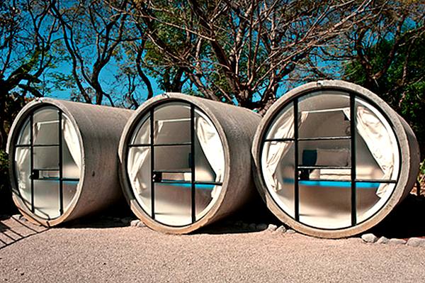 20 номеров отеля в часе езды от Мехико устроены внутри сточных труб. В каждой комнате есть электричество, окно с занавесками и багажное отделение под кроватью.