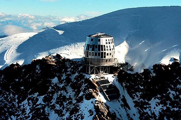 «Приют наслаждения» для покорителей Монблана расположен на высоте 3835 м. Футуристическое яйцевидное строение в четыре этажа на 120 мест оборудовано по высшим экологическим стандартам.