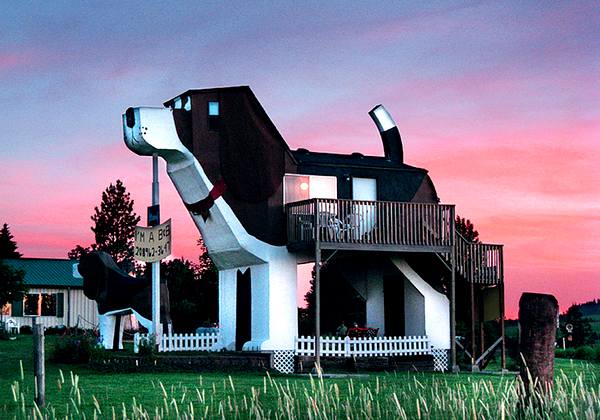 10-метровую собаку породы бигль из фанеры и гипсокартона зовут Милашка Вилли. Комнаты расположены в ее животе. Авторы проекта — семейная пара художников, резчиков по дереву.