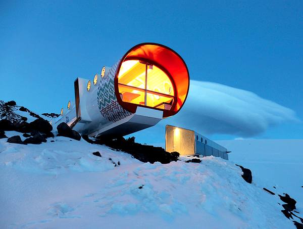 Один из самых высокогорных отелей мира (3912 м) расположился на южном склоне Эльбруса. Гостевые модули напоминают капсулы космического корабля. Спальни рассчитаны на 12–18 мест, есть кают-компания. В техническом помещении — комфортабельные туалеты и душ. Вся энергия поступает от солнечных батарей.