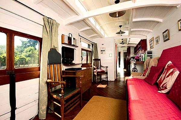 Отелю принадлежат четыре отреставрированных железнодорожных вагона, позволяющих совершить путешествие в разные времена и стили, начиная с XIX века.