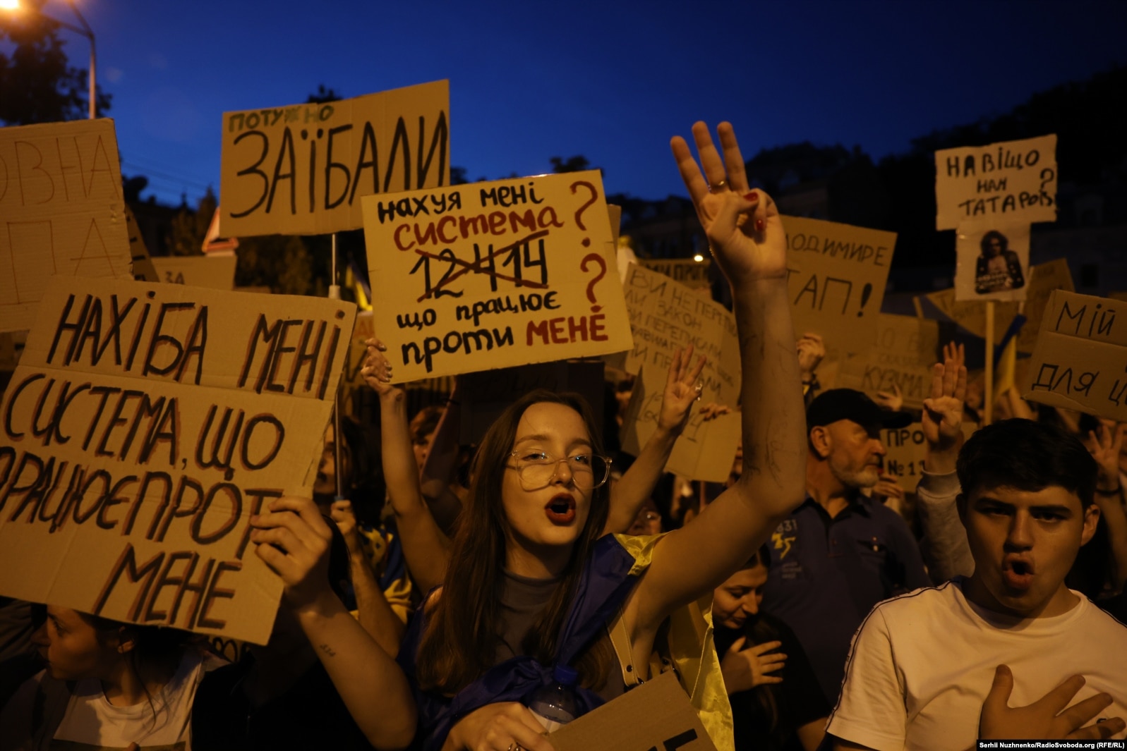 Протест проти законопроєкту, що обмежує незалежність НАБУ та САП. Київ, 24 липня 2025 року