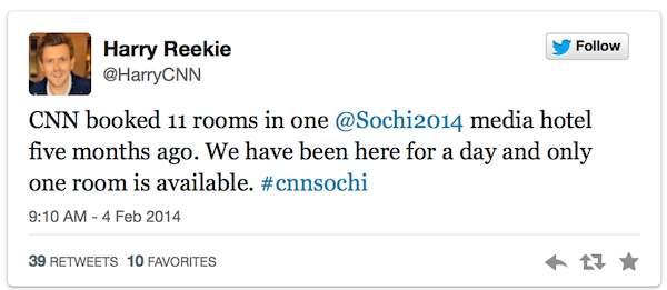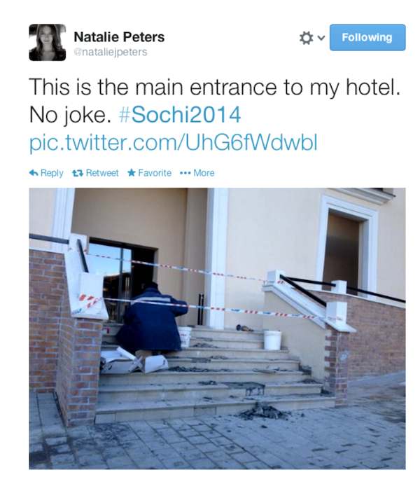 Иностранные журналисты, прибывшие в Сочи в преддверии старта Олимпиады, оказались в шоке от увиденного: по их словам, условия жизни в гостиницах, куда поселили представителей прессы, оставляют, мягко говоря, желать лучшего. По данным сотрудников СМИ, готовы к приему гостей только шесть из девяти отелей, остальные находятся в стадии строительства. Вода в номерах если и есть, то не питьевая.