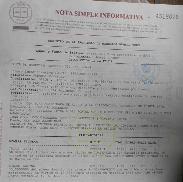 Автор нашла у супругов Тулубов аж две дачи в Испании. Эту зарубежную недвижимость не найти в декларации о доходах, которую Тулуб подал в должности губернатора Черкасской области. Однако в испанских реестрах она присутствует. Апартаменты семьи Тулубов находятся на популярном курорте для богачей Марбелья.