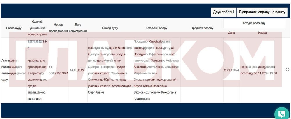 Мусимо розчарувати захисницю Крупи: голова Київського апеляційного суду Ярослав Головачов у відповіді на запит «Главкома» повідомив, що його суд не планує передавати матеріали справи в інші інстанції поки не закінчить розгляд.