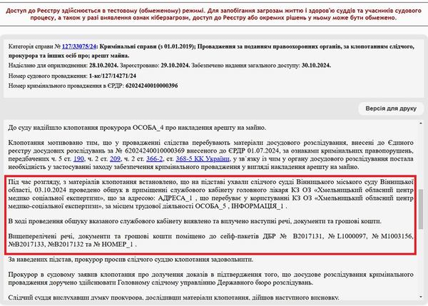 Окрім стопора у судах, смуга невдач переслідує і правоохоронців, задіяних у справі голови МСЕК Хмельниччини. Вінницький міський суд відмовив Офісу генпрокурора в арешті майна, яке є речовими доказами. Ідеться про купу готівки, вилученої з тумбочок у квартирі Тетяни Крупи; документи та гроші з робочого кабінету голови МСЕК Хмельниччини (за даними ДБР, там було відшукано $100 тис.); автівку Porsche Cayenne, 2019 року вартістю 2,5 млн грн, яка є власністю чоловіка підозрюваної тощо.