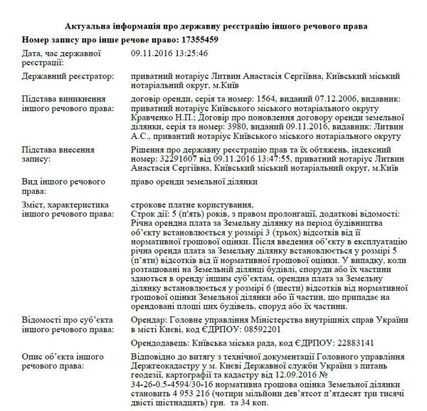 Зачем было в данном случае нарушать законодательство, понять также нетрудно. Как свидетельствует дата регистрации участка в земкадастре, его отвод планировался при прошлой власти, но Майдан спутал все планы. Когда новое руководство МВД нашло унаследованную «курицу, несущую золотые яйца», уже действовал прямой законодательный запрет на передачу земли для градостроительных нужд при отсутствии ДПТ или зонирования, а их как раз и не было.
