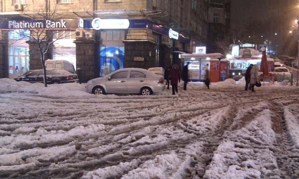 В который раз парализован Киев: снегопад, которого опять не ждали. На фоне «чрезвычайной ситуации природного характера» вовсю пиарится глава КГГА Александр Попов.