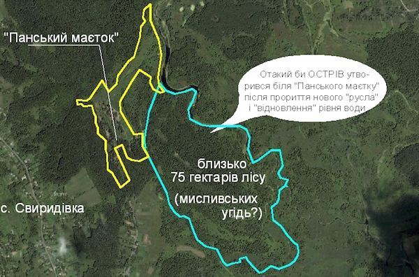 Очевидно, планы гр-на Т. В. Кутового простираются значительно дальше. Потому что если “расчистку” Сулы от Билогорилки и до Свиридовки и искусственный подъем воды в пойме реки искусственными же дамбами не остановят Минэкологии и правоохранительные органы, то получим следующую картину: экс-министру под видом “покращення” реки удастся ее сделать проходной для маломерных судов от своих земель до границы Сумской области вверх по течению, выше Билогорилки. Именно там находится еще одно ценное приобретение экс-министра - высокий холм над поймой Сулы с красивейшим пейзажем под ним - Засульем, что на Сумщине: