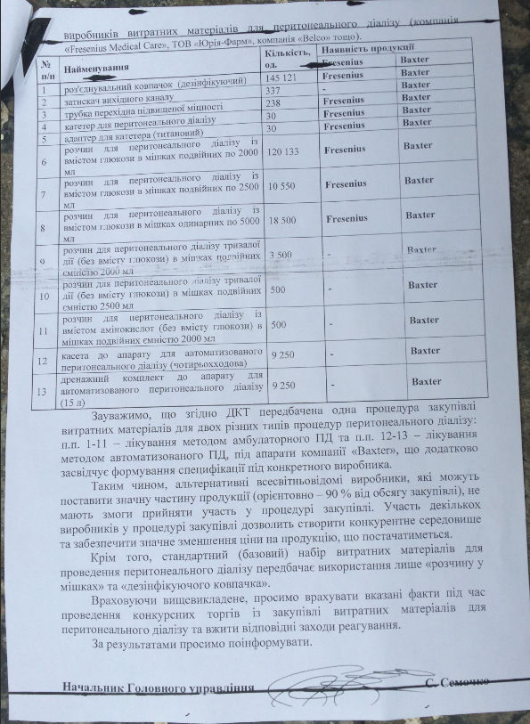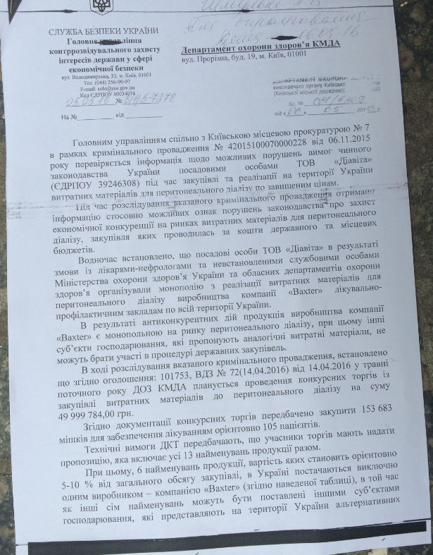 З 2015 року цей постачальник возить препарати напряму від виробника. Тоді ж і привід платити відкат СБУ відпав. А от в СБУ з’явилися питання до діалізних закупівель саме у цього постачальника.