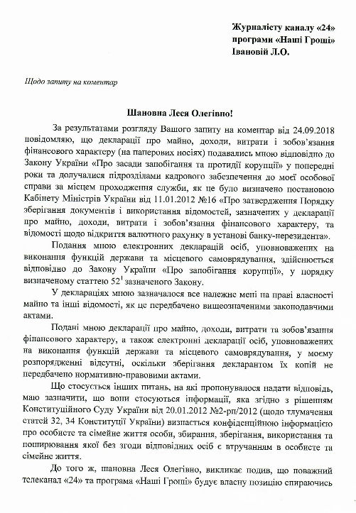 На запит програми про коментар Сергій Семочко прислав письмову відповідь, у якій зазначив, що питання про родинні зв«язки з Лисенко це конфіденційна інформація про його особисте та сімейне життя. Пояснень щодо природи цього звязку, походження майна та громадянств РФ Семочко не надав.