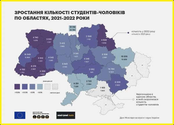 Зі зрозумілих причин, найбільше таких «студентів» залучають у західних областях, проте статистика свідчить про різке зростання контрактників у всіх регіонах країни, за винятком хіба Херсонщини, яка минулорічної вступної кампанії перебувала під окупацією.
