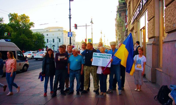 Сине-желтые флаги в России берут на пикеты, в частности, в защиту политзаключенных и преследуемых крымских татар. Российские активисты из Санкт-Петербурга и Москвы объединились в бессрочную акцию под названием «Стратегия-18» в честь дня депортации крымских татар 18 мая 1944 года. Ежемесячно 18 числа они выходят на улицы с целью рассказать о ситуации в Крыму.