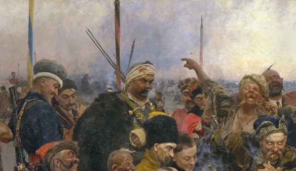 На своей картине «Запорожцы пишут письмо турецкому султану» (в 1891 г..) над головами казаков Илья Репин скрыл на копьях желто-голубые и красно-черные флаги. Консультантом художника, во время написания этой картины, был известный историк украинского казачества Дмитрий Яворницкий. Именно из экспонатов коллекции Яворницкого Репин изобразил большую часть амуниции, оружия, другой казацкой атрибутики, в том числе и флаги.