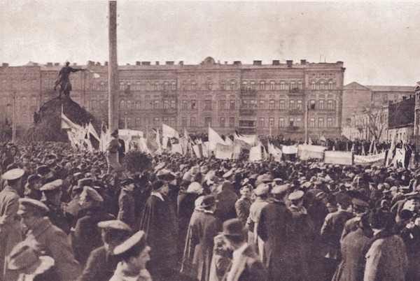 Впервые после Февральской революции 1917 года украинские сине-желтые флаги публично появились в Киеве, Одессе и Харькове 16 марта. Украинизация подразделений царской армии на фронтах Первой мировой войны и на Черноморском флоте происходила под украинскими флагами.