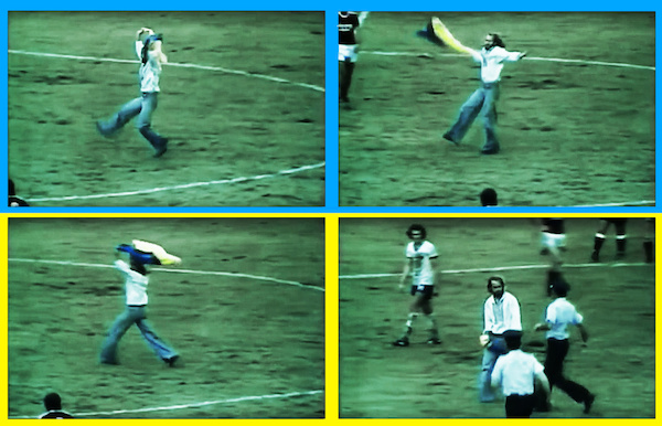 А уже через пять дней там же во время полуфинала по футболу между сборными ГДР и СССР, в составе которой преобладали игроки из киевского "Динамо", 150 украинцев вывесили плакат "Свобода Украине!". Во втором тайме 20-летний Данила Мигаль из Тандер-Бей (Онтарио) выбежал на поле в вышиванке и с сине-желтым флагом, выкрикивая "Свобода Украине!" и танцуя гопак. Акция длилась 15 секунд, после чего полиция вывела его со стадиона.