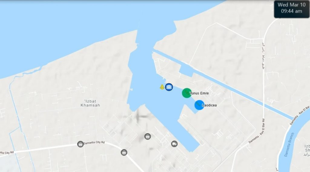 6 марта у египетского побережья было зафиксировано сирийское судно Laodicea. Оно находится в санкционном списке США. Некоторое время Yunus Emre и Laodicea стояли рядом у причала порта Дамиетта.