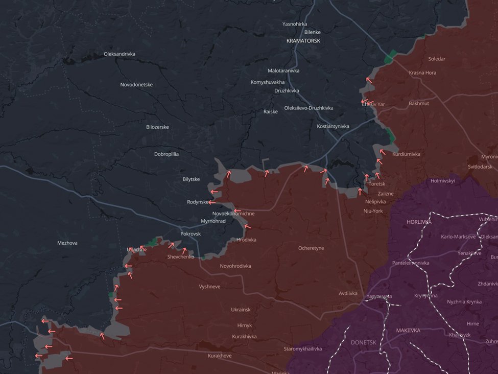 Російські атаки іноді проводяться групами по 4-6 чоловік, але в багатьох випадках зменшилися до численних секцій по 2-3 особи, які намагаються проникнути між українськими позиціями. Російська піхота прагне просунутися якомога далі за початкову лінію України та закріпитися там.