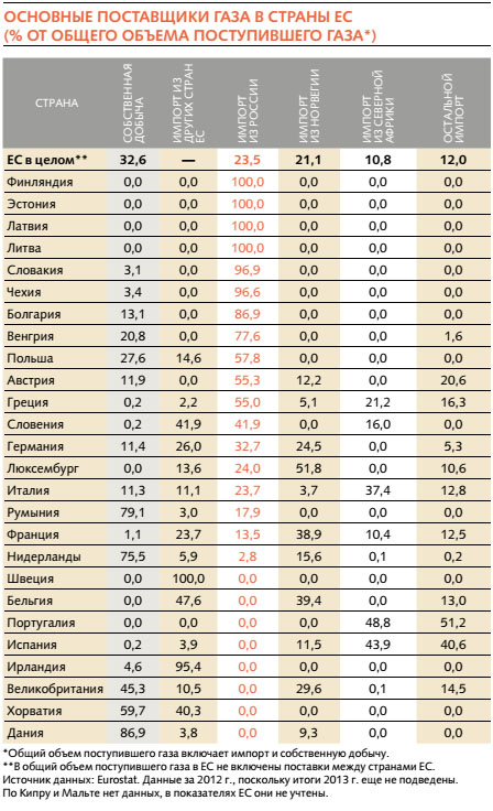 Африканским газом пользуются главным образом средиземноморские члены ЕС и их соседи: в Португалии его доля 90%, в Испании — 59,3%, в Италии — 37,4%, в Греции — 21,8%, во Франции — 18,2%, в Словении — 16%. Есть и возможности для наращивания добычи газа в Африке. Кстати, в Алжире разведан сланцевый газ, добычей которого не прочь заняться американцы.