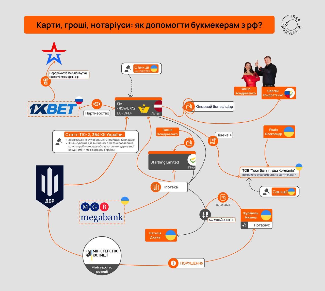 Свого часу в Україні функціонували десятки букмекерських контор, у тому числі з материнськими компаніями в Російській Федерації. Після початку повномасштабної війни частина з них самостійно припинили своє функціонування. Деякі отримали санкції з боку української держави. Та оскільки індустрія давно пішла в онлайн, для функціонування букмекерських контор потрібні не тільки вебсайти, де гравці розміщують ставки, а й певна фінансова інфраструктура, що надає інструменти для грошового обігу між гравцем і букмекером.Так от, під санкції в Україні після 24.02.2022 року потрапляли як контори (наприклад «ПаріМатч»), так і дотичні до них фінкомпанії (приміром Royal Pay Europe). Про останні і піде нижче мова.